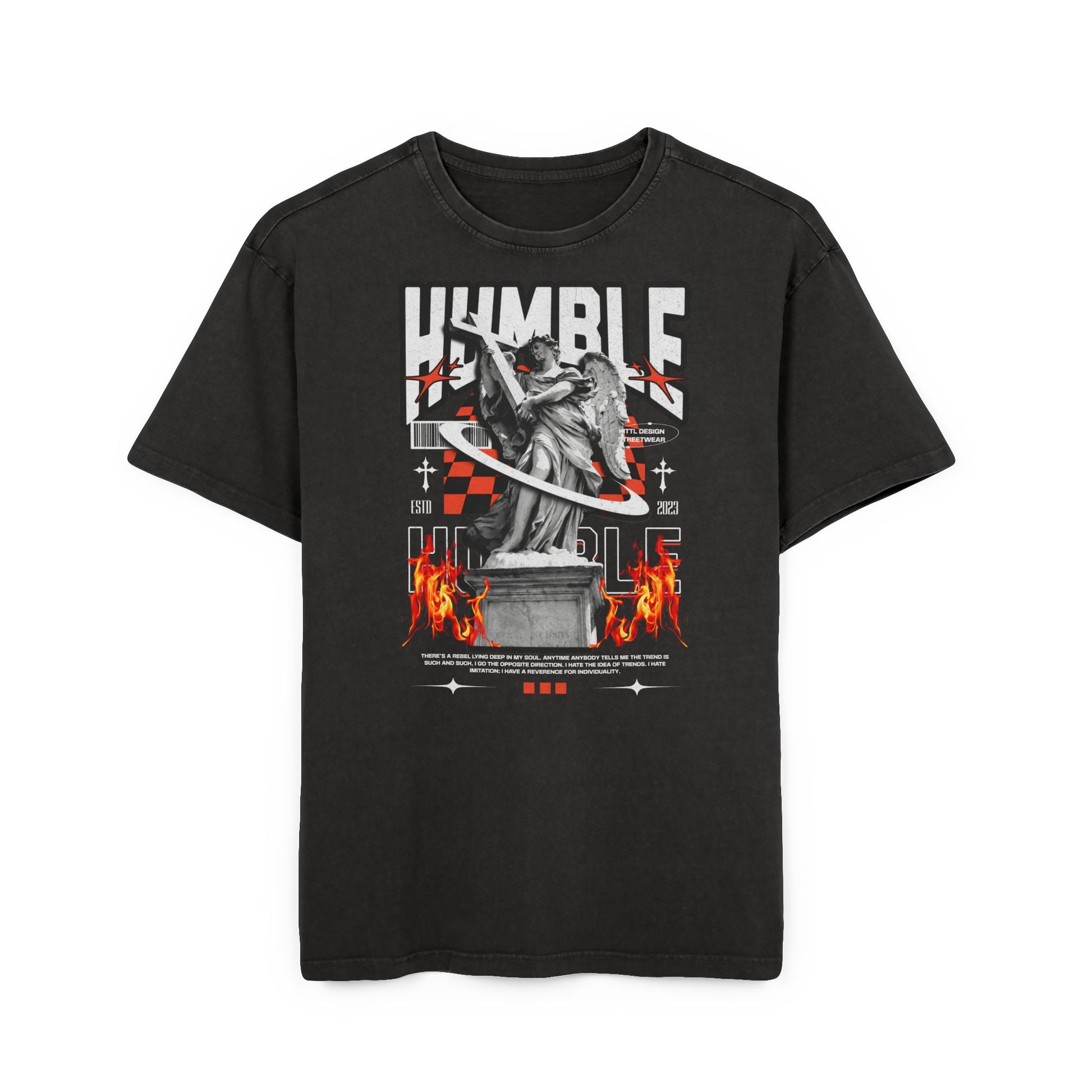 “Humble” Angel Graphic Tee — Vintage Acid-Wash Oversized T-Shirt